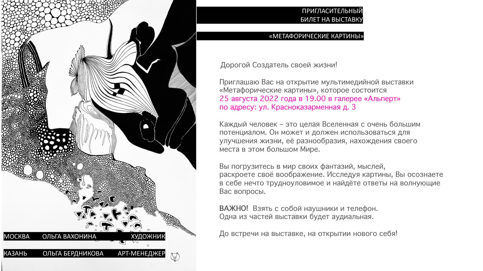 Мы рады пригласить Вас на открытие выставки Ольги Вахониной